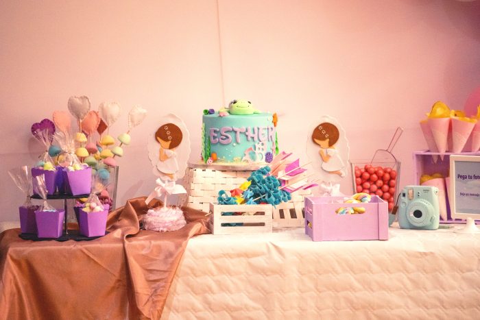 La decoración incluía una mesa dulce temática con chuches preparadas y envasadas individualmente, y una deliciosa tarta fondant con su nombre, la figura de una tortuga y toques marinos que encantaron a la niña. También se encargaron de colocar un arco de globos en los mismos tonos y diferentes detalles por todo el espacio, que sorprendieran a los niños.